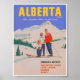 Alberta Canada Vintage Ski Poster featuring a family of skiers in this colourful retro travel poster.