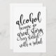 An elegant cutting edge wedding sign, features the text "alcohol because no great story ever started with a salad" in a extroverted script font, the brush texture adds a spontaneous and playful feeling. The background colour can personalised according to your needs and preferences, please contact me if you have any special request.