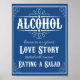 Alcohol Because No Story Started with Salad Wedding Bar Sign - Funny Wedding Open Bar Signage chose your background color