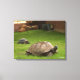 This image shows two Aldabra tortoises crawling through a grassy area. These tortoises are found on Aldabra Island, one of the Seychelles northeast of Madagascar in the Indian Ocean. Aldabra Island is a coral atoll bordered by jagged limestone and small beaches and encloses a large mangrove-bordered lagoon. The largest concentration of tortoises is found in the grasslands called platins. | "Smithsonian" and the Smithsonian logo are registered trademarks owned by Smithsonian Institution.