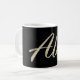 A very beautiful personalized cup / coffee cup / tea cup in whitegold lettering look on black for Alex.
