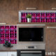 This is a vibrant, kaleidoscopic design with a striking pattern of red, pink, and purple hues, featuring geometric shapes that create a reflective, gem-like effect. This would make a bold and eye-catching accent tile on a wall.