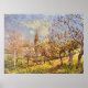 Alfred Sisley. Orchard in spring. Positive cute landscape. People walk in the spring garden enjoying nature. There are cute clouds in the blue sky. Reproduction of famous works of art images in the public domain.