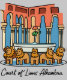 Cute cartoon illustration of the Court of Lions, Alhambra. The design features the Fountain of the Lions with twelve lion statues. Tribute to Granada's Moorish heritage.