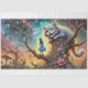 Beneath a twilight sky brushed in watercolor purples and pinks, Alice and the Cheshire Cat sitting in the tree exchange riddles and grins. This surreal scene makes a whimsical background for crafts, collages, and creative wrapping. Sparkling stars and whimsical mushrooms add charm and gentle motion. A magical moment for those who love dreamy details and storybook worlds. Let your creativity climb right into Wonderland. Explore more whimsical fantasy designs in my Alice In Wonderland tissue paper collection!