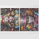 Double design, maximum size about 15x20 for each image, using a 20x30 sheet. A vibrant, psychedelic double design featuring two iconic characters from Alice in Wonderland: one with Alice and the other with the Mad Hatter. Bursting with bold, unconventional colours and surreal patterns, this design captures the whimsical and fantastical essence of the story in an entirely unique way. Perfect for adding a touch of colour and creativity to your decoupage projects