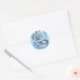 Round sticker with a vintage John Tenniel 19th century engraving redrawn and coloured. Alice from Alice in Wonderland is looking up at the Caterpillar, which is sitting on a huge mushroom. Below it says "I — I hardly know, sir, just at present — at least I know who I was when I got up this morning, but I think I must have changed several times since then." Outlined in navy blue on a light sky blue background.