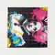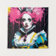 Imagining Alice as the Rabbit with pink hair fantasy AI generated art in the colours of pink, blue,yellow, black and white with ink splatters.