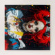 Imagining Alice as the Red Queen fantasy AI generated art in the colours of red,blue,yellow, black and white with ink splatters.