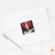 Imagining Alice as the Red Queen fantasy AI generated art in the colours of red,blue,yellow, black and white with ink splatters.