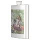 The product is a good size and came exactly as it was pictured. The lid is not attached to the flask, which could be dangerous on drunken nights... The print came out surprisingly well and looks very sharp. Would definitely recommend.