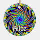 The rainbow spiral artwork is printed on both sides of this ornament... The word Alice is printed on one side only... You may change the word... Or you may delete it entirely... You can wear this as a necklace if you provide a long string...
