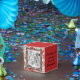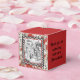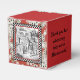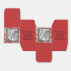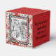 Square classic-style red favour box with a vintage Alice in Wonderland image, on two sides, of Alice in the Queen of Hearts’ courtyard with a black and white chequerboard frame on a background of playing cards on red. The customisable sentiment on the sides reads “Thank you for celebrating with me in Wonderland!" See the entire Wonderland Favour Box collection in the PARTY FAVORS section.