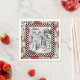 Package of 50 white paper cocktail napkins with a vintage image of Alice in the Queen of Hearts' courtyard in a black and white chequerboard frame on a background of playing cards on red. See matching plastic and paper coasters. See the entire Wonderland Napkin collection in the FOOD/BEV | Linens section.