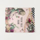 Alice in Wonderland baby shower backdrop banner with vintage Alice and friends on a vintage pink and black chequered floral background. This vintage Alice in Wonderland banner backdrop is easily customised with the text of your choice, or you can delete the text.