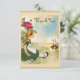 Elegant vintage Alice in Wonderland Mad Hatter's Tea Party Neutral Baby Shower Thank You flat cards for girls or boys with Alice in a green dress sitting in a grassy meadow watching the white rabbit with his pocket watch. There is a beautiful antique pink rose and daisies beside her on an old faded vintage postcard background with pretty green border and green writing. On the reverse of the invitations is a cute drink me bottle, red heart jam tart, a teapot, and a chic antique pearl and lace mat for you to personalise with your details. All of the text can be easily customised to meet your needs and you can change the font style, colour and size of font if you desire. If you need any assistance customising your product please contact me through my store and I will be happy to help. I have matching invites in my store. Pearl mat by ©Hazel Kinvig-Paul www.design-a-dream.co.uk PLEASE NOTE: All products on Zazzle have flat printed images.