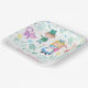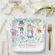 Ever-so-cute Alice in Wonderland Birthday Party paper plates! Featuring Alice with a flamingo, the Mad Hatter, grinning Cheshire Cat, and the White Rabbit. Cute, simple, modern girl birthday party plates with wonderland theme.