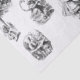 Whimsical characters from the children's book Alice in Wonderland, Alice, the White Rabbit, Mad Hatter, Caterpillar and Cheshire Cat, appear in black and white on this British literature themed tissue paper for gift wrapping or decoupage and arts and crafts.