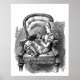 Vintage Alice in Wonderland antique fairytale emo goth drawing of Alice with the black kitten wonderland poster - follow the white rabbit.