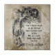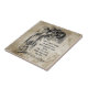 Alice in Wonderland; Cheshire Cat with Alice White Ceramic Tile / Trivet. Vintage illustration fairy tales and nursery rhymes image of Alice with the Cheshire Cat by John Tenniel in Lewis Carroll's Alice's Adventures in Wonderland, 1865, a text-designed dialogue included. "We are all mad here":) placed on an old floral parchment paper background.