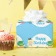 Cool Alice in Wonderland pretty blue wrapping paper for a book themed birthday. Little girl Alice in her blue dress and the Mad Hatter sit next to your custom HAPPY BIRTHDAY message for a bookworm birthday girl.