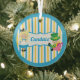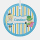 Cute Alice in Wonderland Christmas ornament gift. Little girl Alice in her blue dress and the Mad Hatter sit on a pretty blue yellow stripes. Customise this whimsical bookworm present with your own text for your favourite librarian.