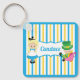Cute Alice in Wonderland keychain for a book lover. Little girl Alice in her blue dress and the Mad Hatter sit on a pretty blue yellow stripes. Customise this whimsical gift with your name or other text.