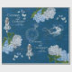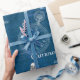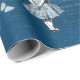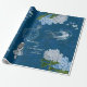 Alice in Wonderland with the quotation from the book, Curiouser and curiouser, cried Alice, with butterflies, beautiful blue and white hydrangeas, a vintage pocket watch, fancy teapot and writng and postmarks from an old French letter are set on a deep cobalt navy blue background with pretty handwriting and text from a vintage French shop receipt to make a pretty, nostalgic floral French literary themed gift wrapping paper.
