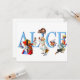 ALICE IN WONDERLAND AND HER FRIENDS DANCE AROUND THE WORD ALICE IN THIS CHARMING IMAGE.