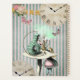 This elegant planner notebook has a fun scene from Alice in Wonderland on both sides. On the front she's having her tea party with the Mad Hatter and the Rabbit and nearby the Card soldiers are standing with a tree of red roses. Above is an antique clock, butterflies, roses and a string of pearls. It's all on a pale green, satin background with a diamond pattern on it. The reverse side is green and white striped with the caterpillar smoking the hookah on the mushroom. Alice is peaking over the edge talking to him. Some clocks, roses, butterflies and a gold banner decorate the rest of the illustration. It's whimsical, it's fun and a bit modern too! You personalise it in the upper corner with the easy to use template provided.