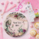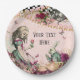 Alice in Wonderland paper plates with vintage Alice and friends on a pink floral and black chequered background. These cute vintage Alice in Wonderland paper plates can easily be customised for your event by simply adding the text of your choice. You can also remove the text.