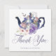 Thank your guests with our beautifully designed wedding in Wonderland vintage Alice in Wonderland-themed thank you card. Perfect for an Alice in Wonderland-themed wedding. The design features a vintage teapot with a mix of our hand-drawn original florals and artwork. We've meticulously restored the iconic Alice in Wonderland vintage illustrations by hand sketching them and bringing them to life with beautiful watercolor undertones and our own personal touch. Design features our original hand-drawn watercolor flowers and a butterfly. Elegant and vintage text style pairings enhance this magical, whimsical, and iconic magical Alice in Wonderland theme. Design by Moodthology Papery