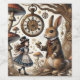 Step into a whimsical wonderland with this enchanting Alice in Wonderland illustration. The Victorian-styled White Rabbit holds his teacup with proper poise, while Alice in her iconic blue dress dreams of adventure. Mystical mushrooms dot the scene, and a fascinating clockwork tree bears a mysterious pocket watch - time is always of the essence in Wonderland! Perfect for nurseries, children's rooms, or any space needing a touch of magical charm. This delightful artwork captures the beloved story's essence with its detailed steampunk-inspired elements and dreamy atmosphere.