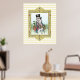 Cute Alice in Wonderland themed wall art print with a unique illustration of W. Rabbit. In this colourful drawing, the White Rabbit, dressed in his finery, is rushing to meet the Duchess with his gloves and fan. The perfect gift for Easter or piece of wall decor for an Alice in Wonderland themed kid's room, nursery or birthday party.