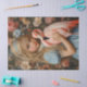 Protective Blue Chinoiserie Alice Flamingo Tissue Paper | Nursery Craft Décor. This gentle blue chinoiserie tissue paper design features a thoughtful moment between Alice and a pink flamingo, inspired by the classic Wonderland tale. Alice stands in quiet defiance, shielding the flamingo from its usual croquet fate, her gingham dress and soft expression set against a stylised floral backdrop. A calm yet story-rich image for nursery crafts, fairy tale bedroom décor, or for covering furniture during creative upcycling projects.