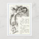 This postcard is a reproduction of a vintage illustration from the book "Alice's Adventures in Wonderland." It shows Alice meeting the Cheshire Cat.
