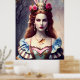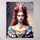 AI generated Alice in Wonderland inspired Alice wears a royal rabbit crown as the queen