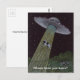 A colour pencil drawing of an unfortunate cow being abducted by aliens in a flying saucer adorns this fun postcard! Customise by changing the text to suit yourself!