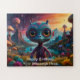 Embark on an intergalactic journey with this adorable blue alien in a colourful mushroom forest! Perfect for kids, this whimsical puzzle transports you to a dreamy world filled with vibrant, swirling mushrooms and playful plants. With the alien's curious wide eyes and quirky, rainbow-like patterns, children will enjoy piecing together this imaginative scene full of magic and mystery. Ideal for sparking creativity and a sense of wonder!