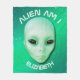 Alien Am I Green Funny Alien Face With Black Eyes Fleece Blanket