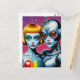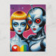 Alien and a Robot in Love Rainbow Postcard