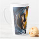 Alien and astronaut in space doing a stare down. Background of stars and planets.