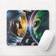 Alien and astronaut in space doing a stare down. Background of stars and planets.