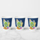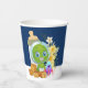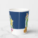 Cute alien baby shower paper cup - this little green alien baby sits with a rather large baby bottle, a rocket ship, flowers, baby blocks, and sucks on a baby pacifier. Colourful and fun!