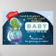 Welcome guests to your baby shower with this colourful and fun 36"x24" poster that features a cute green alien baby in a diaper sitting atop a planet among the stars. A red flag reading "Welcome" gets the message across. Update the text as you see fit - your hardest decision will be whether to hang it or frame it!