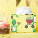 Green Martian type alien grilling food on the barbecue to customise, personalise by changing to your name