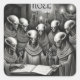 This is a charcoal drawing of an alien Christmas carol choir in session.