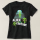 This image features a playful and whimsical design centred around the theme of aliens and fashion. A group of six cartoon aliens, depicted in a line, stand in front of the bold text "ALIEN COUTURE". The aliens are all green, with large eyes and simple, rounded bodies. The central alien is standing tall and is the largest of the group, while the others are shorter and more slender. The text "ALIEN COUTURE" is large and bold, written in black block letters, and appears to be draped over the aliens, suggesting a connection between the extraterrestrial beings and the world of fashion. The design is vibrant and colourful, with a playful, almost childlike quality.