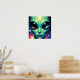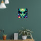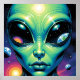 Extraterrestrial poster. A captivating otherworldly design with an extraterrestrial alien being with big bulging eyes holding the reflections of other planets, including earth in them.