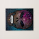 Alien Fantasy Skull Puzzle Universe & Planet Design. Gothic horror human decorated skulls Science Fiction style.